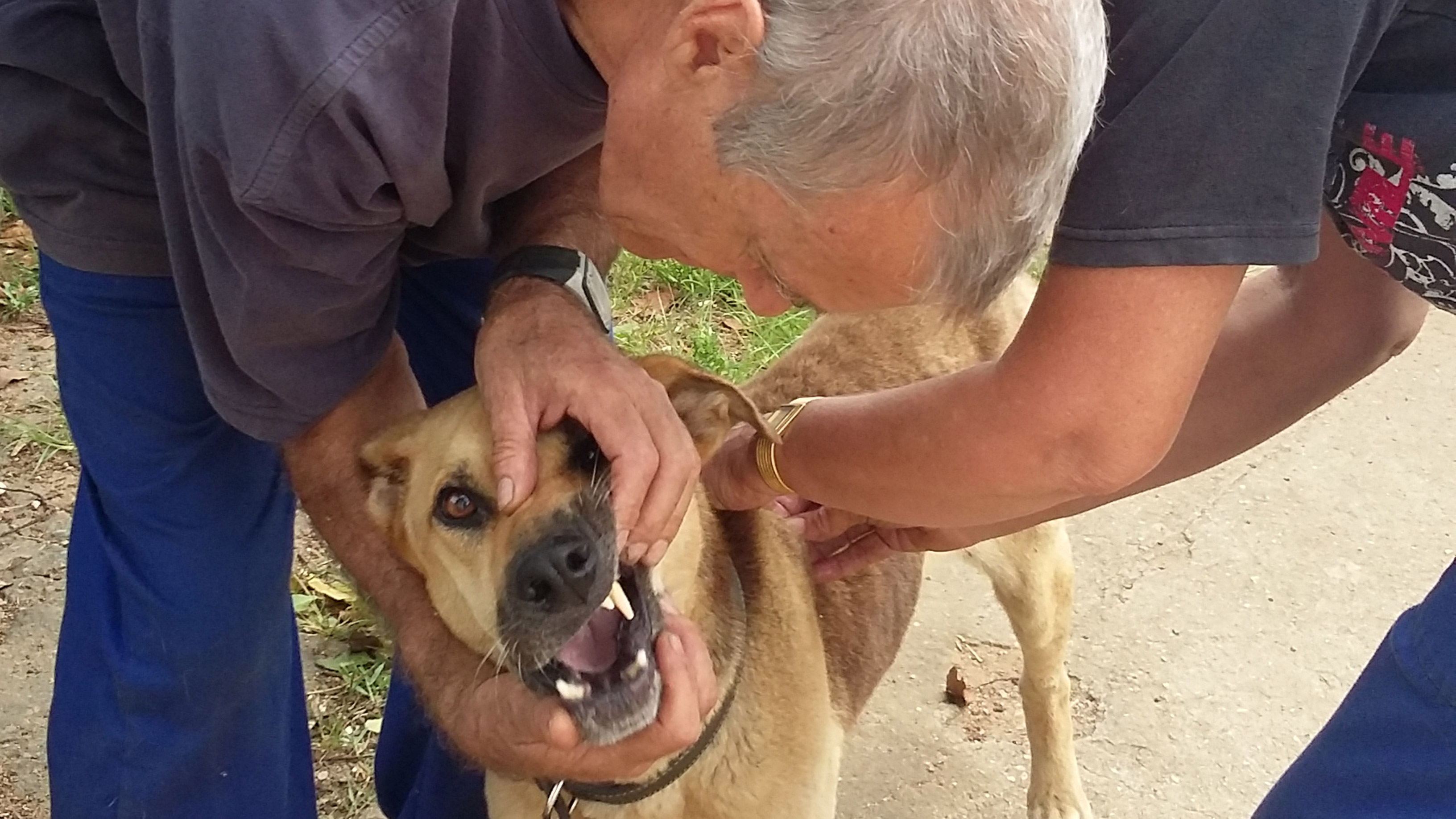Nicky will tell you if you ask - but I do recall Nicky telling me to just wait behind for this feeding because this dog can be aggressive and has bitten many people. However, by Nicky's complete empathy and respect for this beautiful creature, she was able to put her face right up to the doggy's face, portraying to me 1) dogs' excellent judgement of character and 2) Nicky's absolutely exquisite heart.